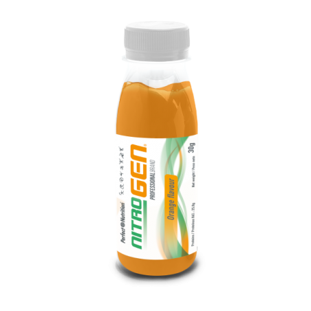 Modo de empleo: Tome antes y durante el ejercicio 60g de NitroGen® (2 botellitas) mezclado con medio litro de agua (250ml en cada botellita). Aumente la dosis si su peso supera los 80 kilos. Para pruebas de larga duración y alta resistencia, mezcle la misma cantidad de NitroGen® en 1 litro de agua.